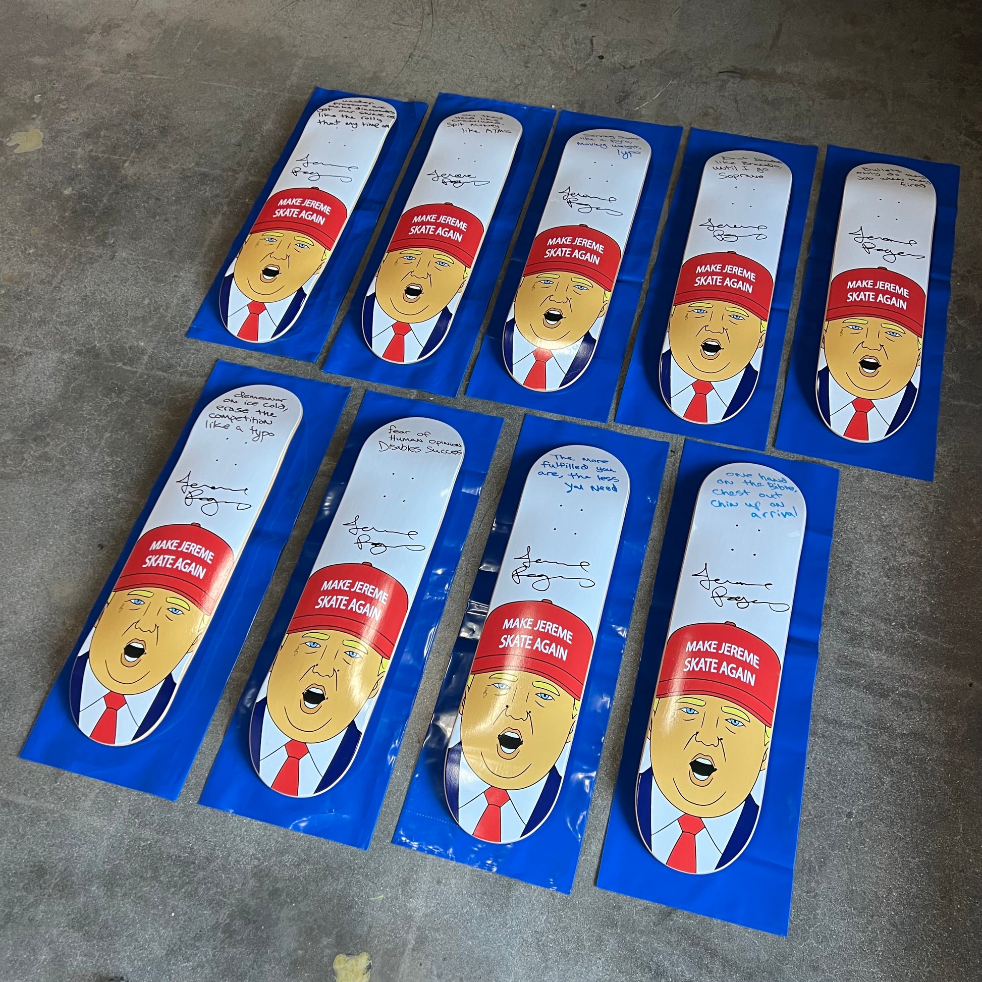 Each Skateboard Deck is Autographed by Jereme Rogers with a unique written message.